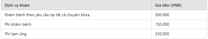 Dịch vụ khám ngoài giờ: