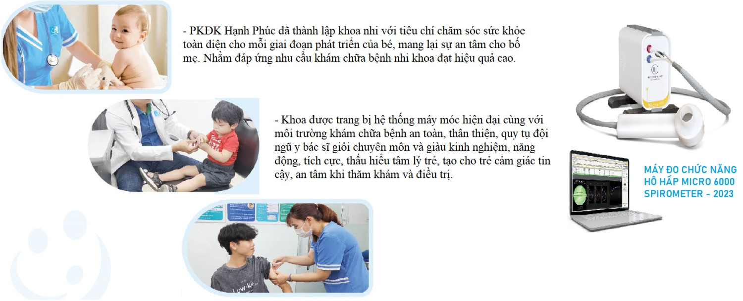 Với phương châm “Trao giá trị – Nhận niềm tin”, Khoa Nhi – Phòng Khám Đa Khoa Hạnh Phúc cam kết mang đến dịch vụ chăm sóc sức khỏe tốt nhất cho trẻ em, đồng hành cùng phụ huynh trong việc bảo vệ và phát triển toàn diện cho con yêu.